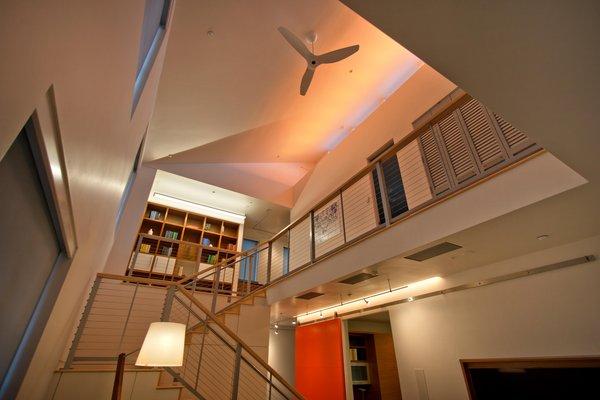 當班尼特和歐哈拉在炎熱的一天第一次踏進這座未來住宅,這里的降溫系統(tǒng)讓他們印象深刻。房子向南的窗戶外有傾斜的屋檐,能在一天最熱的時候擋住太陽光,但在冬天又不會妨礙斜照的陽光溫暖屋子。房屋的墻壁比普通房子更厚,能起到更好的隔熱和保溫效果,而屋頂?shù)牟牧蠒㈥柟夥瓷涠皇俏铡佭^光的混凝土地板也能更好地隔熱保溫。這棟房子所用的混泥土參雜有天然的火山灰以減少水泥的使用,降低二氧化碳排放。